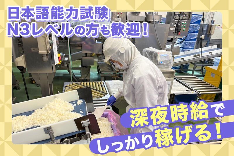 求めている人材 << 特別な経験やスキルは不要! >> ■未経験スタートの 20代~50代男性スタッフ多数活躍中! ■加工・製造部門では、 30代~50代の主婦さんも活躍中です! ■日本語が堪能な方歓迎 (日本語能力試験N3レベルの方) ~~~~~~~~~~~~~~~~~~~~ こんな方にオススメです! ~~~~~~~~~~~~~~~~~~~~ ◇ライフスタイルに合わせて 無理なく働きたい ◇未経験からでも始めやすい仕事に就きたい ◇子育ても落ち着いたから、 久々に仕事復帰したい ◇ブランクはあるけど昔工場で働いた経験を 活かしたい : 1つでも当てはまった方は大歓迎です! ~~~~~~~~~~~~~~~~~~~~ こんな経験が活かせます ~~~~~~~~~~~~~~~~~~~~ ・正社員・アルバイト・パート・派遣・ 契約社員など雇用形態に関係なく、 食品工場・スーパー・製造業などでの、 食品 製造、工場内作業、工場内作業員、 軽作業スタッフ、軽作業、工場正社員、 製造、工場作業員、軽作業パートなど 野菜や食品に関わるお仕事の 経験がある方は その経験やスキルが活かせます! ・社員食堂・学校給食・飲食店・カフェ・ 居酒屋でのキッチンスタッフ、調理員、 調理スタッフ、キッチン、調理補助などの 経験がある方もその経験が活かせます!