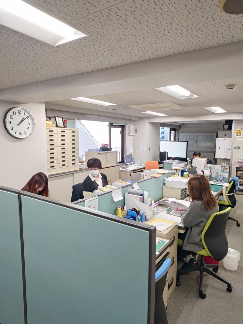 職場環境 穏やかで気さくなスタッフばかりで、10年以上働くメンバーが多く定着率ばっちり◎ 本社は女性スタッフ5名のみで活躍中です! 他の営業所では産休取得中のスタッフが1名、産休復帰したスタッフが3名と ライフイベントと両立しながら長く働ける環境が整っています。