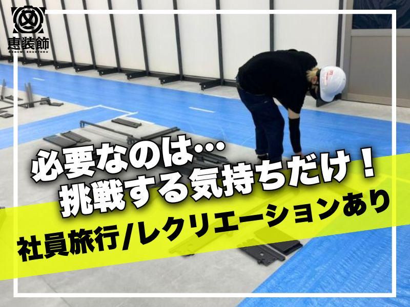仕事内容 ━━━━━━━━━━━━━━ 名古屋で、 “空間施工”を仕事にしませんか? ━━━━━━━━━━━━━━ ✨完成した瞬間の達成感を味わえる! ✨未経験スタート大歓迎◎ ✨経験よりも人柄・意欲を重視! ✨手当充実!家族・住宅・出張・資格支援あり ✨年間休日100日以上&長期休暇あり ✨髪型・髪色・タトゥーOK!自分らしく働ける! 「経験はないけど、手を動かす仕事がしたい」 「形に残る仕事で達成感を感じたい」 そんな想いを大切にします! 【仕事内容】 ショップで使用される陳列棚(什器)を、 プラハンと呼ばれる専用工具を使って 一つひとつ組み立てていくお仕事です。 【具体的には】 名古屋市内を中心に、 100円ショップやアパレル店舗など 多くの人が利用するお店の現場で ・什器の組立 ・レベル調整 ・パーツの取り付け といった作業を行います。 作業は2~4名のチーム制。 一人で黙々と…ではなく、 声を掛け合いながら進めるので未経験でも安心です! 大きな材料や完成品を扱う際は、 周囲への配慮を大切にしながら作業。 高所作業時も、安全帯・ヘルメット着用を徹底し、 安全第一で取り組んでいます。 ■□■ ここがイチオシ! ■□■  ̄ ̄ ̄ ̄ ̄ ̄ ̄ ̄ ̄ ̄ ̄ ̄ ̄ ̄ ̄ ̄ 【◆未経験から“一流の技術”へ挑戦!】  ̄ ̄ ̄ ̄ ̄ ̄ ̄ ̄ ̄ ̄ ̄ ̄ ̄ ̄ ̄ ̄ ̄ ̄ 名古屋は、 大型商業施設や量販店が多い 東海エリアの中心都市。 新規出店や売場改装の案件が豊富で、 常に新しい現場に携われる環境です。 室内作業が中心のため、 天候に左右されにくく、 じっくり技術を身につけられるのも魅力。 自分が手がけた売場が完成し、 多くのお客様が行き交う光景を見ると、 「街の一部をつくっている」実感が湧いてきます。 工具を触ったことがなくても問題ありません。 最初は先輩のサポートからスタートし、 少しずつできることを増やしていきます。 チーム作業だから、 分からないことはすぐに聞ける環境。 挑戦しながら、確実に技術が身についていきます。 【◆手厚い待遇と働きやすい職場環境で安心!】  ̄ ̄ ̄ ̄ ̄ ̄ ̄ ̄ ̄ ̄ ̄ ̄ ̄ ̄ ̄ ̄ ̄ ̄ ̄ ̄ ̄ ̄ 賞与は最大年3回! 今なら入社お祝い金10万円支給◎ 各種手当も、皆勤・技能は一律として 家族・住宅・出張・現場手当 etc. 様々な手当で毎月の収入も安定! 頑張りがしっかり給与や手当に反映されるので、 やりがいも抜群! 社内レクリエーションや年1回の社員旅行もあり 社員から好評です◎ 年間休日は100日以上! 夏季・年末年始と長期休暇も取得可能◎ 慶弔休暇、産前産後休暇、育児休暇も◎ ライフイベントにも柔軟に対応できるので、 働きやすい環境です! 【◆株式会社恵装飾ってどんな会社?】  ̄ ̄ ̄ ̄ ̄ ̄ ̄ ̄ ̄ ̄ ̄ ̄ ̄ ̄ ̄ ̄ ̄ ̄ 株式会社恵装飾は.... 2017年、2名からスタートしました。 「社会を通して正しく思考し行動する」 「日々の出来事に感謝する」 「日々を安全に終える」 という3つの価値観を大切に 1つ1つの仕事を丁寧に行って お客様からの信頼を獲得。 現在は大阪本社の他、 名古屋、埼玉にも拠点が御座います。 また来春には、 東京営業所を開設予定となり、 関東や東北など全国を回って 働くこともできます! 【◆従業員インタビュー!】 <◇Oさん> ▼良かったこと難しかったこと/やりがい  ̄ ̄ ̄ ̄ ̄ ̄ ̄ ̄ ̄ ̄ ̄ ̄ ̄ ̄ ̄ ̄ ̄ ̄ ̄ 仕事を通じて様々な人たちと交流できることが楽しいです。 毎日が新鮮で、刺激的な現場を楽しんでいます。 一方で、自分の覚えが少し遅いと感じることがありましたが 「塵も積もれば山となる」という座右の銘を胸に、 日々コツコツと努力し、少しずつ成果を出しています。 <◇Kさん> ▼良かったこと難しかったこと/やりがい  ̄ ̄ ̄ ̄ ̄ ̄ ̄ ̄ ̄ ̄ ̄ ̄ ̄ ̄ ̄ ̄ ̄ ̄ ̄ 私が仕事で一番楽しいと感じるのは、 仲間と連携をとりながら仕事が進んでいる瞬間です。 そういう時だからこそ、チームとしての力を感じられますし、 一体感を得られるのが嬉しいです。 自分の手がけた仕事が、実際に多くの人たちの目に触れ、 楽しんでもらえることは本当に嬉しいです。 また、当社の社内イベントは非常に充実しており、 毎回楽しみにしています。 これも一つのやりがいだと感じています。