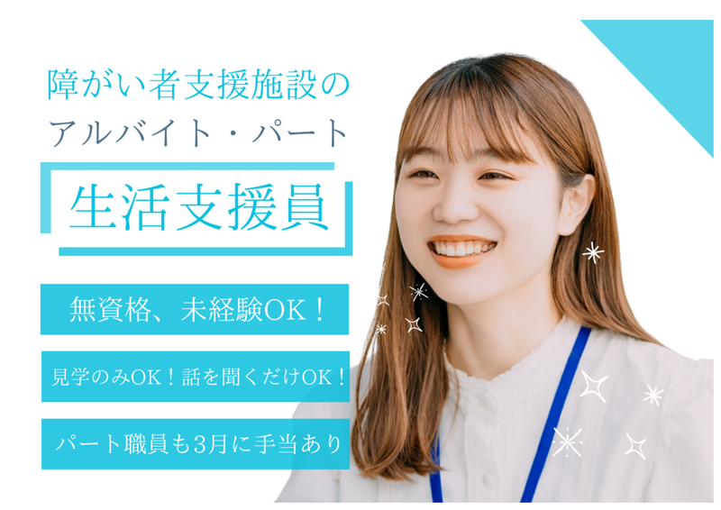 求めている人材 \\ 未経験者歓迎!経験者は優遇! // <<無資格から挑戦できる福祉のお仕事>> 介護福祉士・社会福祉士などの有資格者歓迎 -------------------- 【こんな方にオススメ】 *資格を活かして新しいことにチャレンジ! *実務未経験だけどやる気と熱意はバッチリ *障がいを持つ方の支援を通じて地域貢献! *誰かの笑顔を見ることが好き・やりがいだ ※思いやりのある対応ができる方、大歓迎! -------------------- 【 経験者歓迎!有資格者歓迎 】 [ 下記の経験があれば活かせますよ! ] *学童保育、放課後児童支援員、障害者支援 *放課後児童クラブ、学童保育指導員 *介護老人施設・介護付き有料老人ホーム *病院・グループホーム・デイサービス *学童指導員、児童指導員、児童クラブなど ※※上記経験の雇用形態は問いません!※※ << ブランクOK ! ブランク歓迎 >>