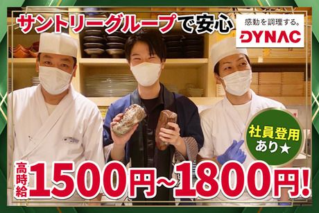 <時給1500円~1800円>大手サントリーグループ!店舗を支えるサポートスタッフ!正社員登用有!