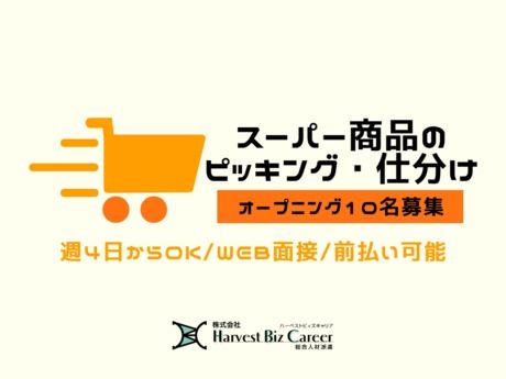 仕事内容 スーパー向け商品のピッキング・仕分けスタッフ \10名以上のオープニング募集!/ ◎みんな同時スタートで安心! ◎週4日~OK!シフト自由でムリなく働ける♪ 【勤務日数】 週4日以上 【お仕事内容】 スーパー向けドライ商品の軽作業をお任せします◎ 未経験でもすぐに慣れるシンプル作業です! ◆ピッキング ハンディ端末を見ながら指定の商品をカートに入れるだけ! \買い物気分で楽しく作業できます♪/ ◆出荷準備 集めた商品を箱に詰めてシール貼り・検品! 梱包が終わったらそのまま出荷へ◎ ◆入荷作業 届いた商品の検品や伝票チェックもあります。 基本は一人でコツコツ作業。集中して自分のペースで進めたい方にピッタリです! * * * 【オープニングだから安心】 オープニング募集でみんな一緒にスタート 職場に馴染めるか不安…という方もご安心ください! 【シフト自由で働きやすい】 「しっかり働きたい」「予定との両立重視」どちらも叶います。 残業ほぼなしでプライベートも充実♪♪ 【友達との応募も大歓迎!】 楽しく働きたいあなたをお待ちしています☆