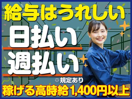 仕事内容 <この求人のポイント> ★即給与ゲット|作業終了時に現金手渡しも可(規定) ★4月スタート|繁忙期に備えて“20名超”の大募集 ★簡単な軽作業|丁寧なサポートで完全未経験もOK ★コンビニ向け|顔なじみの商品ばかりで親近感UP ★選べる給与規定|嬉しい!日払いや週払いにも対応 ★年齢・経験不問|若年層~中高年まで幅広く活躍中 作業内容について  ̄ ̄ ̄ ̄ ̄ ̄ ̄ ̄ ̄ みんな知ってる、あのコンビニ向けの商品を扱う フローズン倉庫内でのとっても簡単な軽作業です! いくつかのチームに分かれて(分業)、みんなで 協力しながら1つの店舗に商品が届くよう作業します! まずは、職場の環境や雰囲気になれていただくため 片付けや整理整頓などの簡単な作業をお任せします。 慣れてきたら(2~4週間程度)、以下の作業を徐々に行います。 様子を見ながらお任せをしていくので、安心してください。 ■組み立て 梱包チームが使う保冷ケースを組み立てる作業です。 保冷ケースは、かさばらないように畳んでいる状態で 保管されているので、1つ1つ組み立てていきます。 ■梱包 仕分けチームによって、店舗ごとに仕分けられた商品が まとめて手元に届きます。その商品を保冷ケースの中に 梱包していきます。2~3人での作業です。 ■仕分け 1本のベルトコンベアを4つのチームに分かれて作業。 1つのチーム(2~3人)で数種類の商品を担当します。 商品はベルトコンベアと並行して棚に格納されています。 棚ごとに電光掲示板が設置されており、自分のチームの 順番になると数字が表示されるので、その数だけ商品を ベルトコンベアに置くだけです! 【扱うモノについて】 アイスクリーム、餃子、チャーハン、フルーツなど さまざまな種類の冷凍食品を取り扱っています。 店舗からの依頼内容により、1個(袋)ずつ または1箱ごとに商品を仕分けます。 軽作業デビュー歓迎  ̄ ̄ ̄ ̄ ̄ ̄ ̄ ̄ ̄ 業務内容はシンプルだからスグに慣れるはず♪ しかも、働く環境もピカイチ!ここで勤務する スタッフの大半は弊社の所属。各セクションに 必ず自社スタッフがいるので手厚いサポートが 可能です!