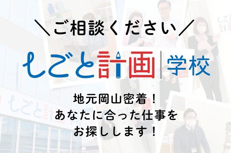 応募後のプロセス 【こちらのお仕事に応募した後の流れ】 ①しごと計画学校から連絡があります ②電話またはメールで少しお話をします 応募方法 Indeedエントリーおよび、「応募ボタン」よりご応募ください。 しごと計画学校 086-241-7032 ━━━━━━━━ から連絡があります。 ☆ご不在の場合はメールで 内容をお送りいたしますので ご確認ください。
