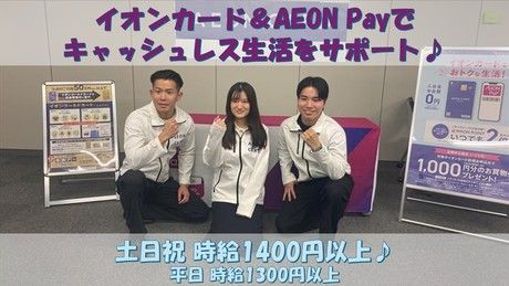 仕事内容 主婦・主夫さん歓迎!イオンカード&AEON Payのオープニングスタッフ大募集♪ ー イオンタウン岐阜北方2026年春OPEN予定! オープンから2026年5月6日までは時給170円UP! イオンカードやAEON Payの 受付カウンターでオープニングスタッフ大募集♪ 「久しぶりの仕事で不安…」 「家庭と両立できるか心配…」 そんな方も安心して始められるお仕事です。 ー オープニングならでは! みんな一緒のスタート! 同期入社が多いので、 一緒にいいお店を作っていきましょう! <お仕事内容> イオン店舗やイベント会場で、 イオンカードやAEON Payの魅力を お客さまにご案内するお仕事です。 ・カードのご紹介・受付対応 (タブレット操作) ・キャンペーンのご案内 ・スマホ決済サービス『AEON Pay』の ご紹介・設定サポート カードの知識はゼロ~でもOK◎ ※研修あり/未経験でも安心スタート! 先輩たちがバックアップするので 安心してご応募くださいね! お仕事のポイント! [POINT1]働き方自由! 主婦・主夫さん多数活躍中♪ シフトは自己申告制で、 扶養内勤務ももちろんOK! ライフスタイルに合わせて働けます◎ お子さんの急な発熱など、 家庭の事情にも柔軟に対応! 家庭・プライベートとの両立を しっかり応援します♪ ~・~・~・~・~・~・~・~・~・ [POINT2]未経験歓迎 受付のお仕事が初めての方でも 始められるよう研修などサポート体制は充実! 接客に興味がある方、スキルアップなど、 きっかけは何でもOK♪ ~・~・~・~・~・~・~・~・~・ [POINT3]イオンならではの福利厚生 従業員割引きが、とっても充実! 『割引き』を使って食料品や 日用品がお得に購入でき、 日々の支出を抑えられるので 中には月5000円以上の節約に なっている方もいるほど♪ 年2回にある『従業員感謝デー』では… さらにお得に買い物ができる! その日に一気に買いだめしたりしてもっと節約する人も♪ ~・~・~・~・~・~・~・~・~・ スタッフの声! 週に数日~勤務OKなので、 家事や子どもの予定に合わせて 働くことができることです! 家庭がある身としては とても助かっています♪ (女性スタッフ) ~・~・~・~・~・~・~・~・ イオンカードやAEON Payの 案内を通じて、キャッシュレス生活を サポートできることがやりがいです! (女性スタッフ) ~・~・~・~・~・~・~・~・ 子育てが落ち着き、イオンなら よく利用していて安心感があります! 久しぶりの職場復帰だったので 自分の知っているところで求人を 見つけてスグに応募を決めました (女性スタッフ) ~・~・~・~・~・~・~・~・ 働きながら実践的な金融知識を 身につけられるのが最大の魅力です! ブランクがあっても安心して取り組めます。 生活と両立しやすいシフトも 魅力の一つですし、 何よりここでの経験がこれからの 人生に大いに役立つと実感しています。 (男性スタッフ) 勤務地 *イオンタウン岐阜北方及び他店舗 イオンモール各務原インター、イオン岐阜、イオンモール大垣、他店舗