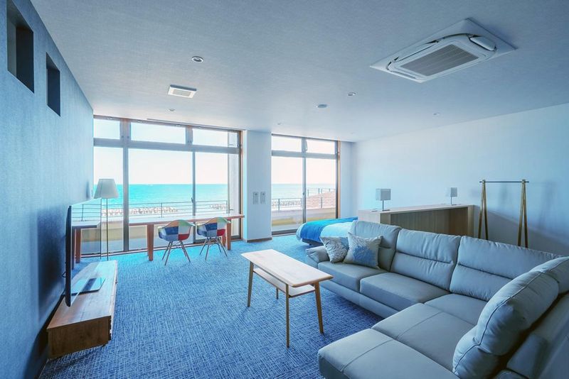 職場環境 海辺のすぐそばに立つ、新スタイルの旅館です。各階和モダンや北欧風など、コンセプト別のお部屋を取り揃えています。 喫煙所:喫煙所あり(屋外)