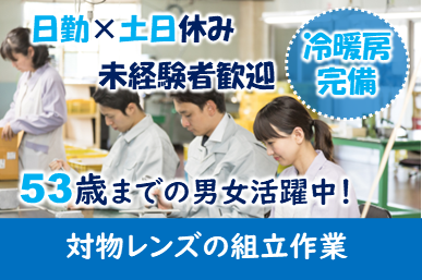 大人気!日勤&長期安定!!対物レンズの組込み作業≪高時給1200円≫☆しっかりとした教育プログラムがあるので、未経験の方でも安心してお仕事スタート♪
