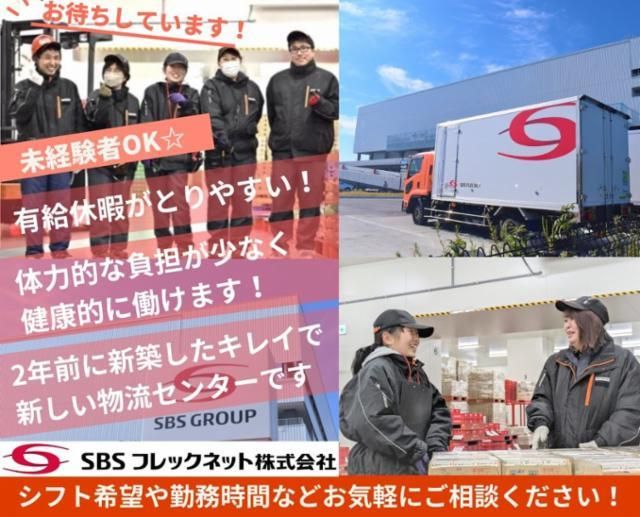 仕事情報 ● 仕事内容 マイナス25℃の冷凍庫内にて、高齢者施設・病院向け冷凍食品の入荷格納・集品を行います。具体的にはフォークリフト・ハンドリフトを使いながらの作業となります。ハンディースキャナーを使用して簡素化して仕分け検品作業がメインなので、ご自身のペースで作業したい方にお勧めです! 資格取得支援制度あり フォークリフトの免許の無い方も大丈夫!入社してからフォークリフト運転資格を取得したいという方には、当社で講座受講費用を負担しています。既に資格を取得しているスタッフがレクチャーして、資格取得をサポートします。免許を取得し、自身の成長に繋げていきたい方におススメの制度です。 有給休暇の取りやすさ◎ 希望のお休みを取りやすい環境です。希望シフト提出時に、お気軽にご相談ください。お子様の学校行事も参加したい主婦(夫)の方や、プライベートの時間も大切にされたい方、家族と過ごす時間を大切にされたい方におすすめです。プライベートとお仕事のメリハリをつけて、健康的に楽しく働きましょう!給与前払いもOKです。 交通費支給あり マイカー・バイク通勤の方には、マイカー通勤費を支給いたします。また、駐車場も無料で使用できますのでご安心ください。そのほかの交通手段でご出勤される方にも、必要に応じて交通費を支給します。通勤距離や、ライフスタイルに合わせてお好きな通勤方法を選べるのも魅力です。 SBSフレックネットとは SBSフレックネットは長年「食の物流」に特化してきた会社です。社内では役職者も含めて全員「さん」付で呼び合い、誰もが意見できる環境です。実際、新入社員の提案が採用されたこともあります。進化をやめない会社だから、業界トップクラスで居続ける。SBSフレックネットは、未来の物流サービスを築きます。