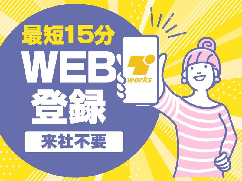 選考プロセス <履歴書不要>ラクラク登録♪ ―★お仕事スタートまでの流れ★― (1)登録会参加用URLをお送りします。 (2)参加したい日時を選択し予約をお願いします。 (3)手ぶらで登録会にご参加ください。(身分証明書があればOK) <登録説明会の流れ> 動画視聴:15分程度 補足説明:10分~15分 書類記入:20分~25分 勤務日などの面談:10分程度 計1hを予定 “来社不要"のWEB面談も選べます! PCやスマホがあれば家からでも参加可能♪ WEB面談の日程については、当日の調整も可能です! 【登録地】 テイケイワークス株式会社 船橋支店 所在地:千葉県船橋市本町5-3-3 大野ビル5F 担当者:採用担当 電話番号:0474553125 メールアドレス:tw-huna@works094.com