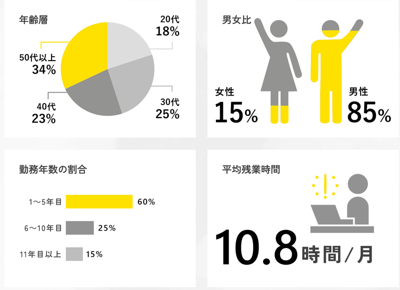 勤務時間・曜日: 8:45~17:45 ※現場などに応じて直行直帰OK ※残業平均10~20時間程度