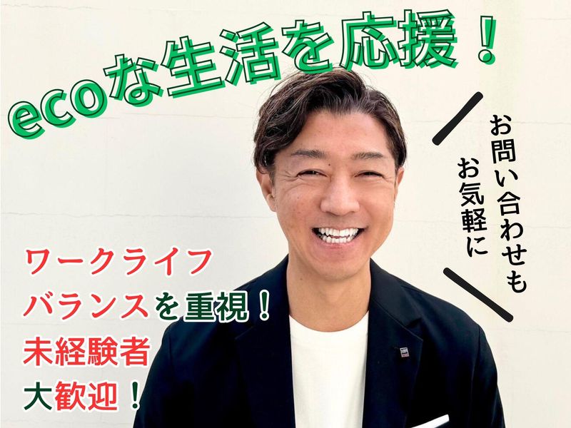仕事内容 「営業は好きだけど、数字に追われる働き方はもう疲れた」 「人の役に立っている実感がある仕事がしたい」 そんな方に、エコビルドの仕事はピッタリです。 私たちは、太陽光や蓄電池など“これからの暮らしに必要なエネルギー設備”を、一般家庭にご提案する会社です。 売り込みやノルマはなく、お客様にとって本当に必要なものだけを一緒に考えます。 ー ✨ここが当社の魅力✨ ー ⭐年間休日130日 ⭐完全週休2日制 ⭐ノルマなし ⭐未経験OK ⭐成長中の再エネ業界 ⭐紹介中心の営業スタイル ー 一般家庭向けの太陽光発電・蓄電池などのご提案をお任せします。 紹介やお問い合わせ対応が中心のため、飛び込み営業はありません。 《 具体的な仕事内容 》 ・お客様宅・来社やメールでのヒアリング ・最適な設備のご提案 ・見積り作成 ・工事スケジュール調整 ・アフターフォロー ◆エリア:神奈川県、東京都全域 ◆案件数:月4~5件程を担当 ◆社用車(普通乗用車)での訪問あり ✅ノルマ・飛び込みなし HPや広告、不動産屋さんからの紹介がメインになります。 商談は、お客様に来社いただいたり、取引先でお話したり、ご自宅に伺ったりとさまざまです。 ※商談場所:ご来社、ご自宅訪問 ※最近はオンライン商談も増えています。 ※ご自宅への訪問の場合は直行直帰OK! ✅お客様の各種サポートもあり 補助金のサポートや保証申請のサポートも行います。 「電気代を下げるなら」「デザイン重視なら」など、 お客様のニーズに合わせて、商品の紹介や料金の説明を行います。 ✅未経験スタートの先輩が半数!1人立ちまで大体3ヶ月! 基本的には興味のあるお客様からのお問い合わせに対するご案内のため、 ご契約につながることが多く、未経験の方も始めやすいのが特徴。 新人さんには先輩が同行し、商談のノウハウを教えていきます。 時には太陽光パネルの工事前の現場調査にも同行してもらいます。 工事がどんなものなのか覚えて損はありませんよ! 現場で得た経験や知識が営業の武器になるんです! イチからしっかりお教えするので安心してください。 社長との距離も近く、何でも相談しやすいんです♪ ー 株式会社エコビルドについて ー 神奈川県大和市にて30年以上、地域の「エコな暮らし」を支えてきました。 自社一貫対応でスムーズなサービスの提供ができ、業績は好調。 太陽光発電など、今後更に必要とされるため、一緒に働いてくださる方を募集します。 ✅安心の一貫対応&直接施工! 販売~設置~メンテナンスまで、当社での一貫対応! 幅広く、専門性が高いノウハウが身につきます。 資格取得支援制度や独立支援制度も有! 年間700件以上の工事を請けている実績があります。 ✅扱っているのは、注目度の高い「環境商材」 家庭用太陽光発電や蓄電池などのスマートエネルギーへの注目が高まっていて、 実際にお問い合わせいただくお客様のほとんどが、前向きに検討している状態です。 長く安定して働ける環境です◎