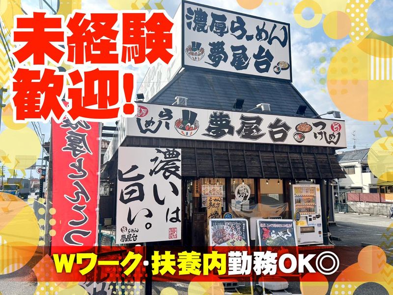 仕事内容 ――――――――――――――――――― ✅週1~・1日2h~シフト調整可能◎ ✅未経験歓迎◎人柄重視の採用! ✅平日のみOK◎扶養内・WワークもOK ――――――――――――――――――― オシャレで清潔感のある内装が自慢! 濃厚とんこつラーメン店にて ホールのお仕事をお任せします! 「楽しく働きたい」 「成長したい」 「一生モノの仲間を作りたい」 そんな方、大歓迎! ============ ≪具体的な仕事内容は?≫ ============ ・注文を取る ・料理の配膳 ・簡単な盛り付け・洗い場 ・店内の清掃 など 明るい挨拶と、元気な接客をお願いします! ✅安心の3〜4名体制 基本はバイト2名+社員1名の3名体制。 忙しい土日ランチやイベント(十日戎など) の時は4名体制に増員するので、 一人に負担がかかりすぎることはありません! ============ ≪働きやすさポイント!≫ ============ ✨シフトは柔軟対応♪ 週1~で勤務可能◎ 「最初は週1からスタート」「平日のみ」 「がっつりレギュラーで」など、 お気軽に相談OK! ✨未経験でも安心の職場! 近くに先輩が常にいる職場なので 未経験の方でも安心してお越しください! 初バイトの方も大歓迎です♪ ✨髪色・髪型自由♪ 自分らしく働きたい方にピッタリ! オシャレもシフトも自由度バッチリ♪ 優しい店長と先輩スタッフが あなたをお待ちしております! ================== ✨ 夢屋台の「ここが自慢」ポイント! ================== 「ここで働いてよかった」 と卒業するスタッフ多数! 店長も仲間も、あなたの 「将来の夢」を全力で応援します。 「バイトに行く」というより 「仲間に会いに行く」感覚! 学生・フリーター・主婦さんが、 それぞれのライフスタイルに合わせて活躍中です。 ✅ とにかく仲が良い!共通の趣味も♪ 現在、関学生や鳴尾高校のメンバーが 主に活躍中。関大生もいます◎ バイト終わりにゲーセンに行ったり、 共通の趣味(JPOP、アニソン歌手 などなど!)のライブに一緒に行ったり。 ラーメン屋巡りを楽しむほど、 プライベートでも仲良しです! ✅ 店長の人柄に惚れるスタッフ続出 「分け隔てなく接してくれる」 「ダメな時は優しく注意してくれる」と、 みんなが慕うお父さんのような存在。 趣味の麻雀をスタッフと一緒に楽しむなど、 距離の近さも魅力です! ✅ 主婦(夫)さんも安心のサポート体制 「子供の急な熱」などの 突発的なお休みにも柔軟に対応します。 50代まで幅広い層が活躍しており、 子育ての大変さを理解し合える環境です。 ==================== 🌈 あなたの「夢と目標」を教えてください ==================== 夢屋台では、スタッフ一人ひとりの 「将来」を大切にしています。 お店の壁には、みんなの夢や目標を掲示中! 「将来は海外で働きたい!」 「警察官になって街を守りたい」 「歌で有名になりたい」 「お金持ちになりたい」 など、どんな夢でもOK。 店長がその目標に向かって 頑張るあなたをしっかり見守り、 応援します。