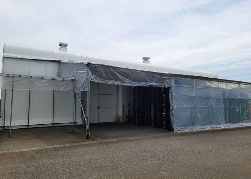 ビニールハウスの組み立て作業スタッフ