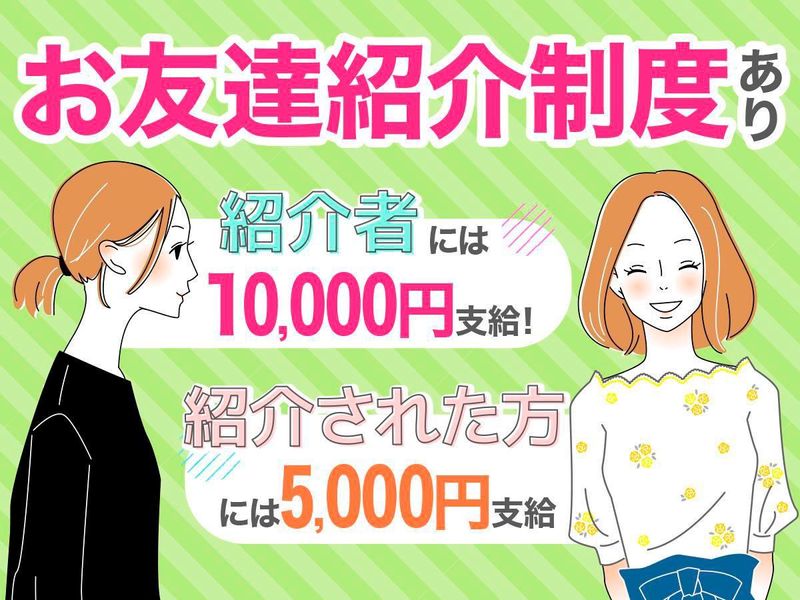時給1,400円 給与詳細 基本給:時給 1400円 【時給】 1400円~ ★昇給あり ★稼働分前払制度あり/規定 ◤ ̄ ̄ ̄ ̄ ̄ ̄ ̄ ̄ ̄ ̄ ̄ ̄ ̄ ̄ ̄ ̄◥ \✨紹介キャンペーン実施中✨/ 紹介したスタッフと、紹介された方が 紹介金をもらえるキャンペーンです♪ ◣________________◢ ⭐紹介者⭐ ご自身が紹介した方が登録研修会参加後、 1か月以内に10回出勤すると1万円GET❗ *紹介する方に上限人数はなし。 10人紹介⇒10人条件達成で10万円GET✨ ⭐紹介された方⭐ 登録研修会に参加後、 1か月以内の出勤回数に応じてお金GET✨ 1日500円。上限10日、5000円をGET❗