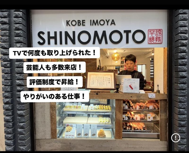 仕事内容 ~日本一に3度輝いた焼き芋専門店~ キッチンカーでの出店などイベント多数◎ ー楽しく働きながら、ここでしかできない 経験をしてみませんか...?✨ ~・~・~・~・~ ▶ここがPOINT◀ ~・~・~・~・~ ✅好奇心みなぎる方、大歓迎です✅ ”楽しみながらも何かに挑戦したい...” ”仕事をしながら新しい自分を見つけたい...” ”焼き芋から日本の農業を盛り上げたい...” ーそんな人、大歓迎です。 新しい挑戦やアイデア、また想いを 共有できるそんな仲間を募集しています。 仕事を通じてあなたの可能性を広げ、 一緒に成長しながら、楽しく働いて いければと思っています! 大切なのは"やってみたい!"という気持ちだけ。 あなたのなりたい姿も全力でサポートします◎ ✅安定した勤務体制✅ 日本一に3度輝き殿堂入りを果たした"志のもと"。 業界内では安定した地位を確立しているため、 挑戦しやすい環境に身を置きながらも、 正社員として着実にキャリアを築くことができます。 ======= お仕事内容 ======= 焼き芋を専門に取り扱う当店で 主に以下の業務を行っていただきます。 ▷お芋カフェにて *レジ業務 *接客やホール、簡単な調理... ▷イベントやキッチンカーでの出店業務 イベントに関しては、全国各地津々浦々 出店するため、普段のカフェ勤務だけでは 得られない経験や出会いがあります!✨ ==================== やりたい事がまだ見つかっていないあなたへ ~夢をかなえる第一歩を~ ==================== "まだ自分のやりたいことが決まっていない" "夢を追いかけながらお金を稼ぎたい" そんな思いを持つフリーターさん歓迎です! 当店ではやりがいをもって働き、しっかり 稼げる環境をご用意しています。 レギュラー勤務で安定した収入を得るだけでなく、 プチボーナスや正社員登用制度もあり、 やる気次第で将来の可能性が広がります◎ さらに、全国各地のイベントやキッチンカー での出店など毎日が新しい挑戦とワクワクでいっぱい! ただのアルバイトでは味わえないような、 やりがいと達成感を感じながら、 日々成長できるチャンスが待っています。 "やりたいことが決まっていないから…" と悩む必要はありません。ここでは、 自分のペースで成長できる環境を提供しています。 挑戦したいことがあればサポートし、 どんどんチャレンジしていける職場です。 第二新卒や新たなスタートを切りたい方も大歓迎! 一緒に楽しく成長していきましょう! ============ "志のもと"について... ============ 兵庫区の小さな店舗から始まった当店。 起業半年で日本一になると心に決め、 3年目で日本一になりました。 様々な困難・壁ももちろんありましたが、 実現できたのは想いの強さとブレーキなく 突っ走ってこられたからこそ! 当店代表は寝る時も新メニューの事 を考えていたり、また自ら産地の農家さん へ赴き、一緒に収穫を行うことも! 少数精鋭ながらも各々が想いを持ち、 切磋琢磨しながら働く事が出来た 結果だと考えています。 楽しく、時には目標に向かって チーム一丸となって働く。 ーそんな当店で挑戦してみませんか?