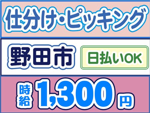 仕事内容 野田市にある優良企業でのお仕事です 商品のピッキングスタッフ大募集! 〇初心者の方も安心して始められます 【ピッキングスタッフのポイント】 〇単純作業×もくもく作業 〇未経験OK 〇日勤のみ 〇髪色・髪型自由 〇時給1300円スタート 〇日・祝 固定休み 〇月~土の間で3~5日勤務 〇ブランクのある方もOK 〇20代30代40代50代60代の男女活躍中 〇シニア・中高年活躍中 〇日払いOK(規定内) 〇交通費支給(規定内) 〇履歴書不要 【ピッキングスタッフのお仕事内容】 <具体的には> 物流倉庫で家具を扱っている大手企業の商品や ホームセンター商品の仕分け作業をお願いします。 未経験の方も多数活躍中! 梅郷駅より送迎があるので通勤も楽々! 休憩所や喫煙所、個人ロッカーがあります。 【ピッキングスタッフの勤務について】 〇日勤のみ(8:30~17:30・実働8時間) 〇日・祝 固定休み(その他会社カレンダー) 急な発熱・体調不良・冠婚葬祭など、 突発的なお休みに柔軟に対応しております。 30分~1時間程度の職場見学を実施しております 【こんな経験活かせます!】 特別な経験・資格は必要ありませんのでご安心ください。 下記経験者は前職活かせます。 〇倉庫内作業・派遣/パート/アルバイト 〇物流倉庫・ピッキング・派遣/パート/アルバイト 〇仕分けスタッフ・派遣/パート/アルバイト 〇ピッキングスタッフ・派遣/パート/アルバイト 〇入出庫作業・派遣/パート/アルバイト 〇中高年パート 前職不問で採用しております。 コーディネーター・定着支援のWサポート体制導入 「マイリク定着支援」導入企業! アンケートで職場の様子を確認し、 コーディネーター・定着支援担当が連携してサポート。 はじめての派遣でも安心して働けるよう迅速かつ 丁寧にサポート対応いたします。 ご不明な点はお気軽にお問い合わせください。 お電話でのご応募も受付中! 株式会社ロフティー柏サテライトオフィス TEL0800-222-6888(フリーダイヤル) 採用担当まで お仕事情報などはこちら https://entori.jp/lofty-kashiwa