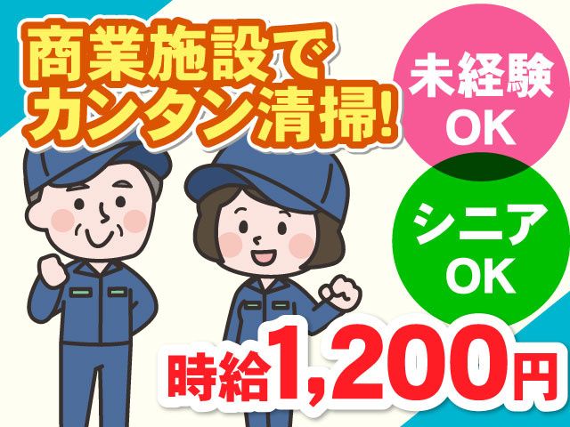 週1日〜・残業ゼロ!Wワークに最適!商業施設でカンタン清掃 半日OK!スキマ時間で働ける◎