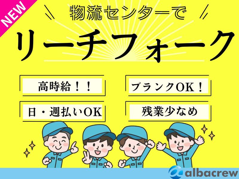 求めている人材 【必須条件】 要フォークリフト免許 ★リーチリフトの経験のある方歓迎 「お仕事自体が久しぶり…」 「免許はあるけど経験が浅い…」 そんな方も大歓迎です✨ 慣れるまで先輩スタッフが 丁寧にお教えするので大丈夫☘ ┏━━━━━━━━━━━┓ ⭐こんな経験活かせます♪⭐ ┗━V━━━━━━━━━┛ 物流倉庫バイトや倉庫作業 軽作業、フォークリフトオペレーター などの経験が活かせます! ✧近しい業種の経験として、 製造や倉庫管理、工場勤務、 配送やピッキング、入荷・出荷作業 梱包作業などで活躍していた方など 正社員・短期スタッフ、 アルバイト・契約社員、 パート・委託・嘱託など問わず様々な キャリアをお持ちのスタッフが活躍中❗ ◌◍┈┈┈┈┈┈┈┈┈┈┈┈┈┈┈⿻*.· ✅要フォークリフト免許 ✅未経験者歓迎 ✅経験者歓迎 ✅ブランク歓迎・ブランクOK ✅異業種からの転職歓迎 ✅大学生歓迎/大学生OK ✅主夫・主婦歓迎 ✅フリーター歓迎 ✅学歴不問(中卒・高卒歓迎) ✅U・Iターン歓迎 ✅年齢不問 ✅経験不問 ✧30代、40代、50代の 男性スタッフが活躍中の職場です!