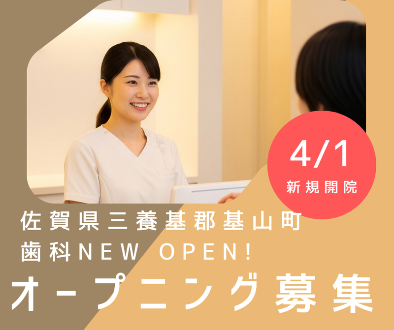 仕事内容 \ 4月開院!オープニング募集 / 基山駅から徒歩7分の駅チカ カウンセリング重視のクリニック 歯科助手・受付業務全般をお任せします。 【具体的には】 *診察受付 *会計業務 *予約管理 *診療補助 *器具の準備・片付け、滅菌 *患者様のカウンセリングや誘導 *ほか付随する業務 <保育士・管理栄養士の有資格者の方歓迎します> 歯科助手業務に加え、それぞれの専門資格を活かした「食育」や「口腔機能管理」に携わっていただきます。 「削る・治す」だけでない、「育てる・守る」新たな歯科医院を一緒に作りましょう。 *資格手当としてプラス1万円支給いたします。 <資格別の専門業務> 保育士の方: 小さなお子様の託児・見守り、小児の口腔機能管理(お口ポカンの改善・MFT)のサポート、キッズイベントの企画。 管理栄養士の方: むし歯・歯周病予防のための食事指導、離乳食指導、高齢者のフレイル(飲み込み機能低下)予防のアドバイス。 < 当クリニックのpoint! > ●新規開院のクリニックなので、人間関係も一から築けます。 ●バリアフリー設計で、車椅子やベビーカーの患者様にも優しい環境 ●未経験からでも安心のマニュアル完備 ●最新のITツール(口腔内スキャナやネット予約URL等)に触れる機会あり ●マタニティ歯科や小児歯科にも注力していきます 2026年4月に誕生する「けやき歯科クリニック」は、『明るい未来への伴走者』をコンセプトに、地域に根ざした歯科医院を目指しています 。 オープニングスタッフとして、全員が同じスタートラインからスタートできます。 院長は「研鑽を怠らず一歩先の感動」を目指しており、最新設備の中でプロフェッショナルとして成長できる環境です 。 患者様のカウンセリング時間を大切にしているため、一人ひとりに寄り添った温かいコミュニケーションを重視する職場です 。 最新設備に囲まれながら患者様の豊かな人生に寄り添う「明るい未来への伴走者」として一緒に歩み出しませんか?