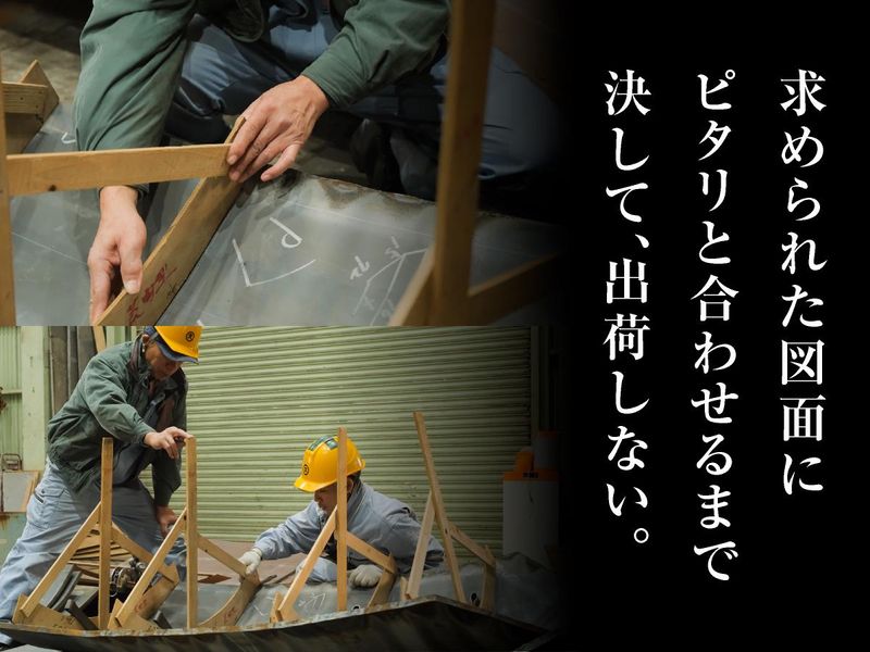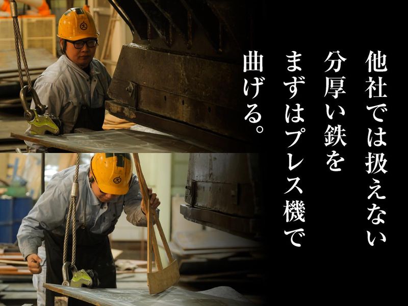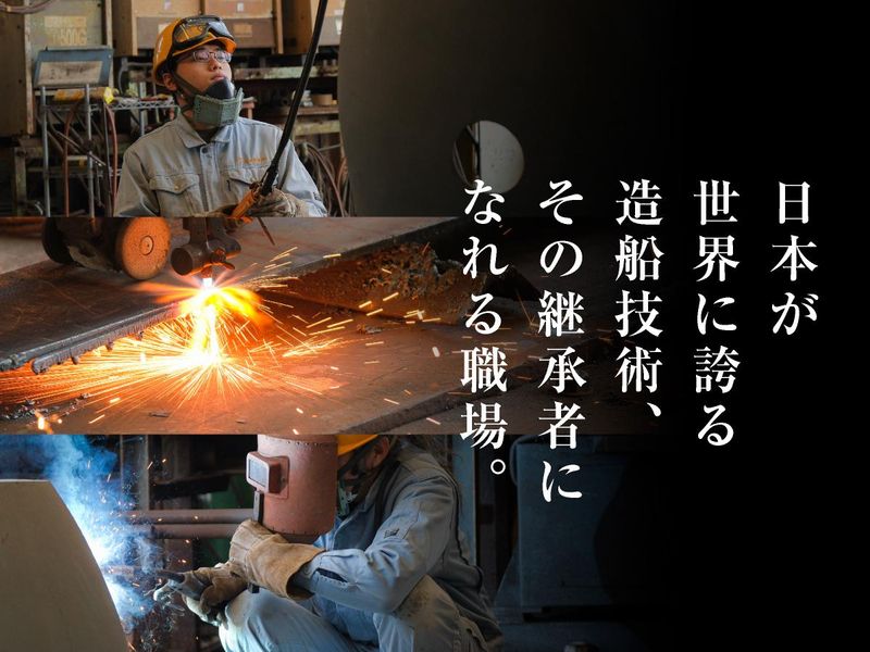 仕事内容 +++- ■キツイだけの現場から、 「造船の世界」へ飛び込もう! -+++ 今の現場、キツイわりには そこまで給料が上がるわけでもない。 未来も別に明るくない… あなたが、そう嘆いているのなら、 今、国が本気で守り 成長させようとしている 「造船の世界」に今からでも 飛び込むという選択肢があります。 ここでの現場作業は、流れ作業や 疲れるだけのものではありません。 日々、工夫しカラダでコツを覚える。 未経験からはじめても数年後には、 「替えの効かない職人」になれる。 続けるほどに 未来がひらける仕事です。 ゆくゆく極めれば 「日本が世界に誇る職人」として ニュースやドキュメントの特集で 取り上げられるくらいの存在になれる。 そういう仕事なのですから。 +++- ■この仕事の魅力とは? -+++ <一生使える技術!> ぎょう鉄、プレス工、製缶・溶接工、 鉄を自在に操る独自の技術があります。 全国的に同種の職人は少なく貴重。 年齢を重ねても、価値は落ちません。 - <将来も安心の安定性!> 官公庁船舶の修繕が中心。 曲げ加工は中・大手会社からの 依頼が9割以上。 常に安定したニーズが存在します。 さらには、国が重点投資分野として 「造船業」を指定。国を守る 安全保障の観点からも 期待されています。 - <腕と共に年収もアップ!> 年功序列ではなく、技術を磨き、 「できることが増える」ことを正当に評価。 現場で腕を磨いた分、年収もアップ! - <携わったことが誇れる仕事!> 国を守る船をはじめ、 携わることが誇らしくなる船が 目白押しです。胸を張って 人に話せる仕事になります。 - <同業他社との違い> 大量生産なし・一点モノ中心。 他社が扱えない 「ウチでしかできない」技術や 加工を求めてオーダーされる ケースが多いのも特徴です。 +++- ■本当に未経験でも大丈夫? -+++ <教育・サポート体制は?> 各工程にはベテラン職人が 必ずいます。1人にせず、 分からないことはその場で 聞きながら弟子のように教えます。 <はじめは、何から始める?> 作業に使う道具の名前や扱い方を 覚えて、安全教育からスタート。 いきなり難しい作業は任せません。 先輩の補助として、 見て・触って・体で覚える ところから無理なく始めていけます。 <どんな風に成長できる?> ◎1年目: 先輩の補助作業をしながら 担当する工程の基本動作を覚え、 1人でできる仕事を増やす。 ◎3年目: 簡単なモノなら 1人で判断してどんどん作業を 進められるように。 ◎5年目: 担当工程をもちオーダーを 直接聞いて動ける一人前の職人に。 +++- ■1日の流れは? -+++ <出社> 営業からの共有でお客様の 要望・図面や納期を確認。 各部署で今日つくるものを 全員で把握します。 ↓ <作業開始> 木型と鋼板を見ながら 加工の順番や使う治具を検討。 先輩から「この部分をこういう 加工で…」など手順を教わり 先輩と一緒に作業を進めていきます。 ↓ <確認・調整> 木型に当てて形を確認し、 ズレがあれば微調整。 完成後、海を進む姿を イメージしながら精度を高めます。 ↓ <仕上げ・納品準備> 品質を最優先にチェックし、 100%、納得のいくものに 仕上げて納品していきます。 ↓ <退勤> +++- ■社風・風土について -+++ 同僚や先輩たちも 気さくな人ばかり。 髪色・ひげも自由ですから みんな個性を生かし のびのび働いています。 ここ数年で採用と育成を進め、 各部門で若手の社員が 頑張る姿があり 社内も活気づいています。 まだ40歳の6代目社長も 現場が大好き。 現場で作業する社員に交じって 一緒に談笑していたりします。 やりたいことや会社への想いも 気兼ねなく伝えられると思います。 +++…………………………………… ■条件や待遇は? ……………………………………+++ 【給与】 月給25万円以上 同じような作業経験者はこの金額です。 能力により変動し この金額以上になる場合もあります。 ※現場関係の仕事が全く未経験の方は、 月給20万円以上です。 【諸手当】 ・通勤手当あり(上限20,000円/月) ・退職金制度あり(勤続5年以上) ・役職手当あり ・皆勤手当あり(5,000円/月) 【昇給】 年1回 【賞与】 年2回+決算賞与あり 賞与:3.5ヶ月分 決算賞与:25万円 - 【休日休暇】 週休2日制 ・第2.4土曜日 ・日曜、祝日休み ・お盆休み ・年末年始休み - 【勤務時間】 8:00~17:00(休憩90分あり) 木曜は「ノー残業デー」に設定。 私生活を充実させようと会社を あげて努力を進めています。 - 【福利厚生】 ・各種レクレーションあり 過去にボーリング大会 チャーター船でのクルージングなど ・各種飲み会あり 社員同士が部署を越えて交流し、 仲良くなれる風土があります。 もしあなたが 遠方から転居して入社する場合でも 仲間が自然とできると思います。 +++…………………………………… ■最後にあなたへメッセージ ……………………………………+++ ちょっと気になったという方も まだ決めきれない方も、 まずはお気軽にご応募ください。 何なら履歴書などの応募書類も 完璧でなくて構いません。 この求人に目をとめて