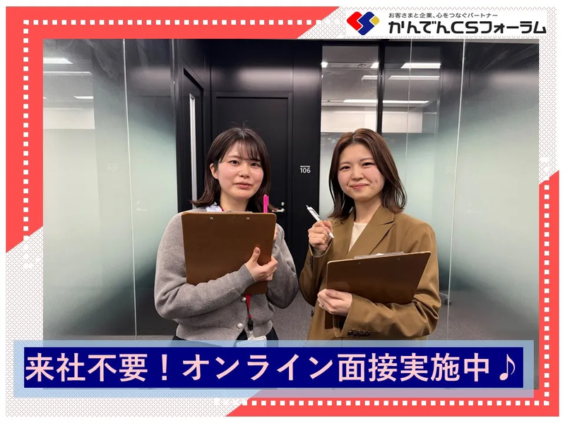 選考プロセス 【応募方法】 電話(平日10:00~19:00)またはWebから24時間受付中! 【応募の流れ】 応募→1回の面接→内定(★書類選考なし★3営業日以内に選考) 応募の確認が出来次第、メールでご案内します。 【面接詳細】※要予約 ■オンライン面接(来社不要/履歴書不要/服装自由) ※通信環境など参加が難しい場合、対面面接も可能です。 ■対面面接(履歴書持参/服装自由) ・平日で実施(所要時間30分~60分程度) ・持ち物(対面面接時):写真付き履歴書、筆記用具 ・会場(対面面接時):京橋フロントビル1F