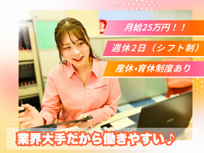 月給25万円|週休2日|綺麗な職場♪接客スキルが磨かれる♪