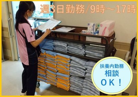 仕事内容 【お仕事の詳細】 徳島市民病院内で入院レンタルセット の受付~病棟への納品~回収業務を 行います。 納品は、カートを使って病室をまわり ベッドサイドに置くだけ! デスクワークより動く仕事が好きな方 にはピッタリのお仕事です。 【入院セットとは?】 タオルやパジャマなど、入院時に必要な衣類 を洗濯付きでレンタルするサービスです。 【具体的には】 ・在庫の確認、補充 ・台車を使って衣類等の院内搬送や病院内 を行き来する作業などの体を動かす業務 ・入院セットの内容及び書類の記入方法の 説明業務 ・各病棟からの書類の回収 ◎申込み・説明は利用する方に対する 事なので、営業的な要素はありません。 ◎定時あがり!残業はありません♪ ◎現在4名の女性スタッフが担当しています。 【電話応募はコチラ】 0120-050-921 (電話受付/平日9:00~17:00) 【おすすめポイント】 ◎40代~50代のスタッフが活躍中 ◎適度に体を動かして働きながらエクササイズ 《年末年始休業のお知らせ》 最終営業日:2025年12月29日(月) 営業開始日:2026年1月5日(月) 休業期間中は、WEB応募のみ受付しております。 休業期間中もお気軽にご応募ください。 2026年1月5日より順次ご連絡いたします。 今しばらくお待ちください。
