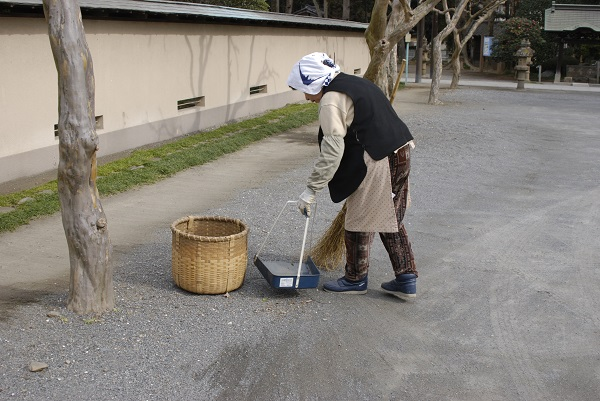 寺院内のトイレ清掃