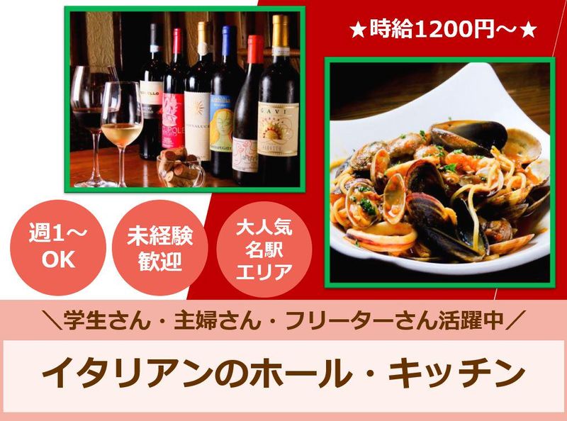 求めている人材 ♢未経験大歓迎 ♢主婦・主夫歓迎 ♢学生歓迎 ♢扶養内OK ◇フリーター歓迎 ♢副業・WワークOK 【こんな方におすすめ☆】 ♢イタリア料理が好き・覚えたい方 ♢ワインがお好きな方 ♢接客を身につけたい方 ♢駅チカの職場で働きたい方 ♢落ち着いた店内・客層の環境で働きたい方