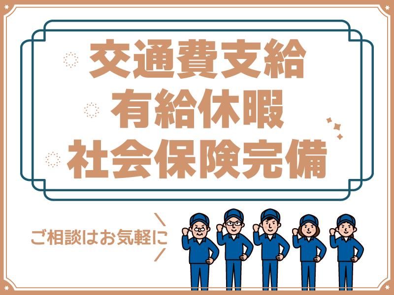勤務地 ※マイカー通勤可/無料P完備 ※交通費は全額支給 ガソリン代は距離算出し支給(規定あり) ※最寄り駅から距離があるので車、バイク等での通勤が便利です。