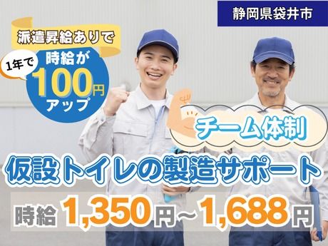 仕事内容 【仕事内容】 <<アピールポイント>> ・1年毎に時給100円UPの昇給制度あり! ・土日祝休み ・未経験歓迎 ・日払い(前借り)可能!※規定有 ≪ 電話でのお問い合わせ ≫ 053-489-6001までお問い合わせください。 建築現場や屋外イベントで使用される仮設トイレを製造している工場です。 プラスチックの部材に工具で穴あけをしたり、ネジ締めをしたりとチームで製品を組み立てていきます。 未経験歓迎。 チーム作業でライン作業ではないのでご自身のペースで作業を覚えていけます。 ※一部重量物あり(便器の重さ約20キロ) 【月収例】250,000円+交通費規定支給 (時給1,350円、1日8時間 、残業20時間の場合) *未経験OK *社会保険即日加入OK *フルタイム勤務 *評価、昇給制度あり *退職金制度あり