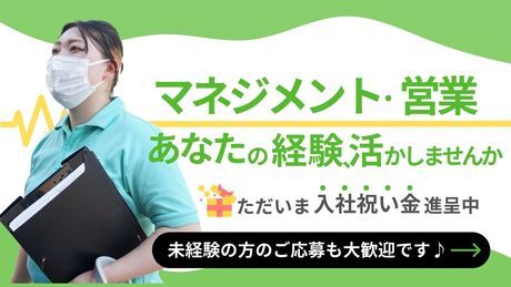 仕事内容 <お仕事内容詳細> 訪問入浴事業所の管理者 ◆営業 ◆相談対応 (ケアマネジャー・お客様・ご家族様) ◆顧客管理 ◆請求業務等の事務作業 ◆担当者会議 ◆現場対応 ※管理者が初めての方も歓迎です。 充実した研修制度をご用意しております!