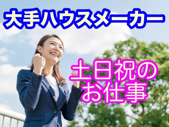 【びわこ大津プリンスホテル住宅博】ダブルワークにお勧め★土日祝日のみ★モデルホーム玄関前/接客案内 ハウジングサポート株式会社 住宅展示場モデルホーム受付案内(屋外) 住宅展示場内にあるモデルホームの玄関前(屋外)で、 最新住宅設備やインテリアにふれながら接客をお任せします。 勤務は土曜、日曜日なのでプライベートを充実しながら勤務できますよ。 Wワークの方や扶養内で勤務されたい方にもおススメめです。 30代、40代、50代の女性スタッフが活躍中です。 明るくお客様にお声掛けやサポートをしていただくお仕事なので特別な経験や難しい知識は必要ありません。 丁寧な事前研修を行いますので、未経験でも安心してスタートできます。