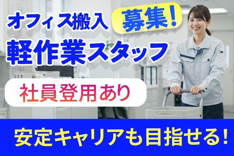 仕事内容 ■当社の魅力 ・時給1,400円スタート!試用期間終了後は随時昇給あり◎ ・平日勤務できる方歓迎!週3日〜OKでシフト柔軟。 ・台車使用や軽作業中心で、女性でも無理なく働けます。 ・社員登用制度あり!安定したキャリアも目指せます ・重たい作業を省いた対応も可能!体力に自信がなくても安心♩ ・現場経験を積みながら、営業フォローなどに挑戦できるチャンスあり! ・家具の搬出入・組立など、DIYや工具が好きな方にも最適!工具の使い方も一から教えます。 ■仕事内容について ・オフィス移転やレイアウト変更に伴う荷物の搬出・運搬作業 ※台車使用や軽作業中心で対応可能 ・オフィス家具(書庫・キャビネット・デスクなど)の解体・組立 ・新しい家具や什器の設置、廃棄物の搬出 ※現場は2人作業から数十人規模までさまざま。チームワークを大切にできる方を歓迎します♩ ■当社について 菊水引越センター株式会社は、法人オフィスの搬入・レイアウト変更を専門に行う会社です。 大手企業や官公庁からの依頼も多く、書庫や什器、家具の搬入・組立・設置を通じて、働きやすいオフィス環境づくりを支えています。 軽作業中心の現場も多く、体力に自信がなくても安心して働けます。繁忙期でもチームで協力しながら効率的に進めています。 ■当社の採用サイトです 働いているメンバーの雰囲気等を是非ご覧くださいませ。 https://site2.saiyo-dekirukun.com/kikusui-hikkoshi ■当社に関するインタビュー記事です 「従業員ファーストで成長できる環境」:湯井課長インタビュー https://note.com/kikusui_hikkoshi/n/nfd9145148b6c 「少人数の職場で自主性が活かせる」:上野さんインタビュー https://note.com/kikusui_hikkoshi/n/ncb17d2a3a9fd 「アットホームで居心地のいい職場」:畑山さんインタビュー https://note.com/kikusui_hikkoshi/n/n1d63a9a36bd6 ■最後に 「体を動かして働きたいけど、重い作業は少なめで働きたい」 「週3日だけ働きたい」「ガッツリ稼ぎたい」 そんなあなたの希望に合わせた働き方ができます。 学歴・経験は一切問いません。まずはお気軽にご応募ください!