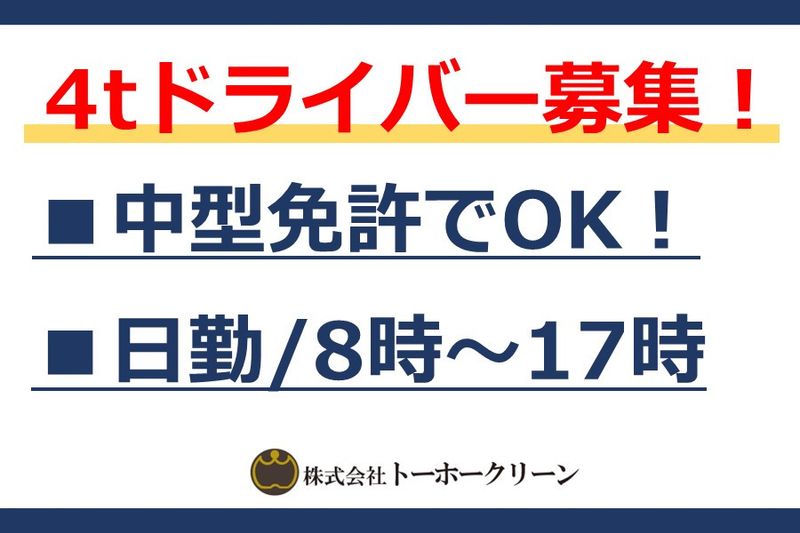 【仕事内容】 環境に優しい廃棄物処理を徹底し、信頼されるサービスを提供するトーホークリーン。 安心のサポート体制を整え、地域の未来を共に守る4t車ドライバーを募集しています! 【当社のオススメポイント】 ⭕現場経験がある方は優遇します! ⭕昇給や賞与など福利厚生も充実! ⭕経験者は前職の給与を考慮します ■具体的なお仕事内容 4tトラックにて、都内や神奈川県内の工場、建築現場、倉庫などから産業廃棄物の回収・運搬を担当していただきます。安心して業務を始められるよう、しっかりとサポートします。 ・自社トラックでお取引先に訪問 ・指示に従い、産業廃棄物をスムーズに回収 ・回収後は、自社工場まで安全に運搬 など 【収集先】 ・工場や建築現場、倉庫 ※固定の2~3カ所を回ります。 【収集するもの】 ・金属や木くず ・廃プラスチック など ※クライアント様ごとに異なります。 【最新装置搭載済み!】 4t車が未経験の方でも安心!バックモニターやドライブレコーダー、デジタルタコグラフがあるため、快適に運転していただける環境です。 ==================== 環境を守り、社会に貢献する仕事。 未経験から安心スタート! ==================== 私たちは、産業廃棄物の適切な処理を通じて、地域の環境を守る大切な役割を担っています。 重量物の取り扱いなど、体を動かす場面も多い仕事ですが、その分やりがいも大きく、現場経験をお持ちの方は即戦力として活躍可能です。 もちろん、未経験の方も大歓迎! 基礎から丁寧に学べる研修体制が整っているため、安心して新しいキャリアをスタートできます。 「社会に貢献できる仕事がしたい」「手に職をつけて安定して働きたい」――そんな想いを持つ方にぴったりの環境です。 \このような方におすすめ!/ ✅ 未経験から安定収入を得たい方 ✅ 体を動かす仕事が好きな方 ✅ 人の役に立つ仕事でやりがいを感じたい方 ✅ 会社のサポートを受けて成長したい方 ======================== ドライバーの働きやすさを徹底サポート! 入社前に「現場体験」もできます! ======================== 面接だけでは伝わりにくい、職場のリアルな雰囲気を知っていただくために、入社前の現場体験を実施しています。 実際の作業内容や職場の空気を見てから決められるので、「思っていた仕事と違った…」というミスマッチもありません。 納得してスタートできる環境を整えています。 ⭐2024年問題への取り組み⭐  ̄ ̄V ̄ ̄ ̄ ̄ ̄ ̄ ̄ ̄ ̄ ̄ ̄ ✅労働時間・拘束時間の遵守 ✅賃金体系の見直しによる収入の安定化 ✅人材育成・キャリア形成の支援 ✅定期的な安全・スキル研修の実施 ドライバーが安心して長く働けるよう、制度と環境の両面から「働きやすさ」を追求しています。 未来の自分に誇れる仕事を、ここから始めませんか? あなたのご応募を心よりお待ちしています✨ 【求人ID-DR7】