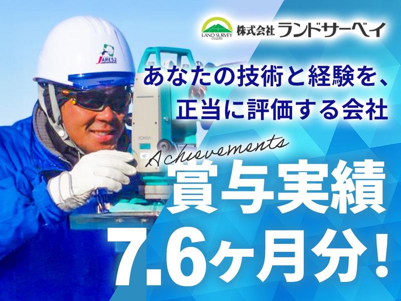 仕事内容 当社は昭和26年創業時より民間開発や官公庁事業において、世界を舞台に様々な測量を手がけております! この度、当社の知識と技術を更に研鑽し次世代に伝えていくべく、新たに「測量士」さんを募集いたします◎ 土地の位置、形状、面積などを測量計画に基づいて正確に測定し、その結果を基に図面作成や地図作成を行う仕事です。建設工事や都市開発などでは不可欠なお仕事であり、測量業者は「測量士」資格保有者の配置が義務付けられているなど、社会的に重要で責任の大きい専門職です!将来のために手に職をつけたい方、当社なら働きながら国家資格取得が目指せます!未経験の方もまずは挑戦してみてください♪皆様の測量士デビューを全力でサポートいたします! 【主な仕事内容】 ・基準点測量 ・用地測量 ・地形測量 ・地籍測量 ・写真測量 など 1日1〜3件の現場を回り、測量業務にあたっていただきます。 週に1日は社内での事務作業(図面作成等)に専念する日を作っているため、事務作業に追われて残業をすることはありません◎ 重いものを扱うこともほとんどないため、身体への負担は少なく勤務できます♪ \\ ✨ CHECK POINT ✨// ◆ かわさき☆えるぼし認定企業♪ 当社は、女性の活躍推進やライフワークバランスの推進に積極的に取り組んでいる「かわさき☆えるぼし」認定企業です◎ 残業時間削減の徹底や、産休・育休の取得等、プライベートと両立できる働き方を提供しています♪ ◆ライフワークバランス重視◎年休125日以上!残業ほぼ無し♩(18時にはほとんどの社員が退勤◎) 個々ライフスタイルに合わせた働き方ができる環境をご用意します。 家庭事情等により残業ができない方も安心してご応募ください。 仕事とプライベート両方を充実させながら、キャリアアップが叶う会社です! ◆前年度賞与実績7.6ヶ月♪ 前年度の賞与実績は7.6ヶ月!業界の中でも高い水準の報酬をお出ししています◎ 成果に応じてしっかりと評価されるので、モチベーション高く仕事に取り組むことができます! 賞与、各種手当、福利厚生も充実しており、安心安定の人生設計が可能です♩ ◆女性測量士も活躍中♪ 測量は男性の仕事というイメージが強いかもしれませんが、当社では女性の測量士さんも活躍しています! 産休・育休の取得推進等、働きやすい環境を整えているため、お気兼ねなくご応募ください♪