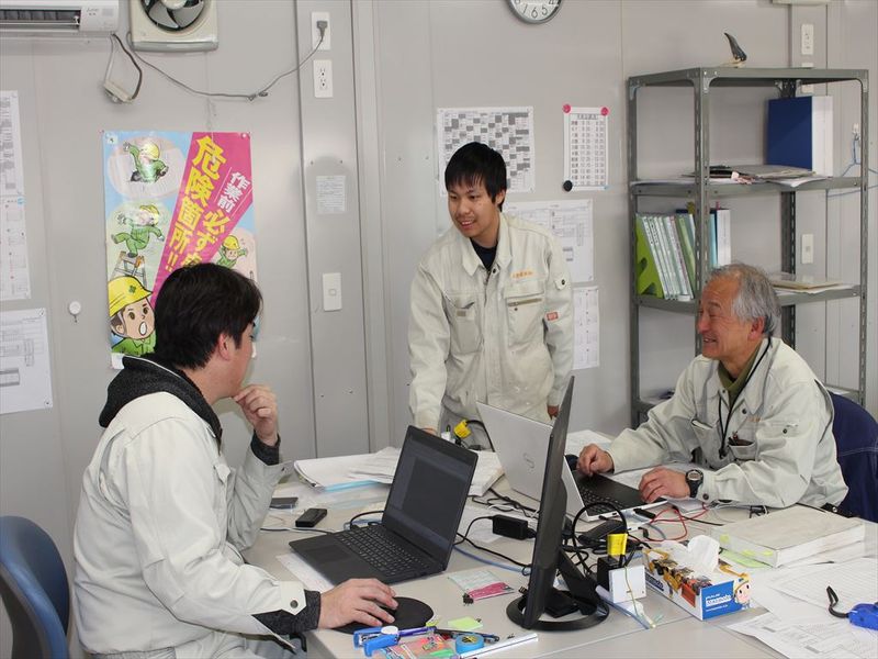 アピールポイント \手厚い指導でグングン成長/ 先輩スタッフの丁寧なOJTあり! 業務を一つひとつ吸収していきましょう。 早ければ3年ほどで、 小さな現場を任せてもらえ、 徐々に現場監督としてとして ひとり立ちできるようになります。