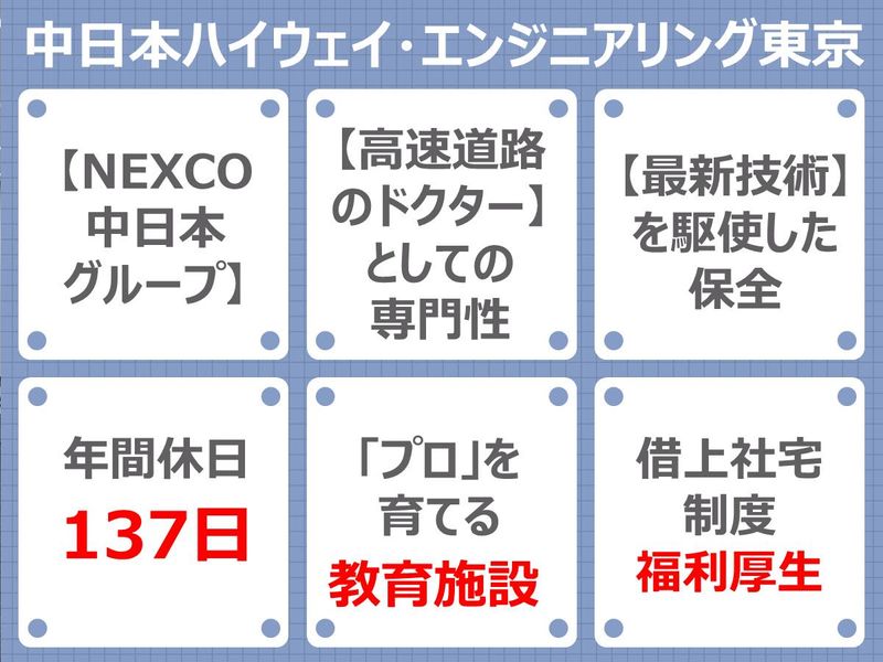 年休137日/NEXCO中日本G/借上げ社宅有/理系大歓迎