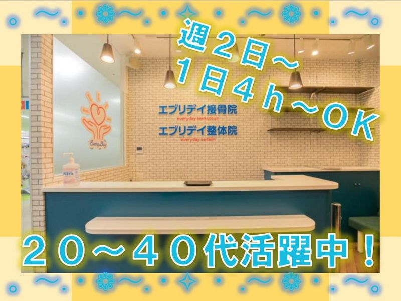 仕事内容 ❇。・♦・。❇。・♦・。❇。・♦・。❇。・♦・。❇。 鍼灸院が3月にOPEN(併設)! オープニングスタッフ募集! ❇。・♦・。❇。・♦・。❇。・♦・。❇。・♦・。❇。 ★未経験大歓迎!お仕事はどれもカンタン! ★午前・午後の両方勤務できる方、 または午後のみ勤務できる方! ★時間・勤務日は応相談可!家庭と両立◎! ★シフトの融通利くので働きやすさも抜群◎ ★ショッピングセンター内での仕事で便利♪ <<応募は1分で完了!気軽に応募OK!>> ✼••┈┈┈【お仕事内容】┈┈┈••✼ 電話対応などの受付業務、 来院時の接客対応、入力などの事務処理, など、誰でもできる簡単な業務です! お仕事内容は難しくありません! 未経験の方も安心してご応募ください☆ 他にも、 ・店頭でのビラ配り (平均枚数に応じてインセンティブあり) ・施術者の補佐 などもお願いいたします。 ※鍼灸院が3月にOPEN(併設)するので オープン後はそちらの受付も ご対応いただきます! ✼••┈┈┈┈┈┈┈┈┈┈┈┈┈┈••✼ <⭐未経験大歓迎⭐>(*˘︶˘*)。・*❤✧ 未経験も安心!お仕事はどれもカンタン! 笑顔で患者さんと接していれば、 リラックスして 治療を受けることができます。 何気ない会話を通して、 治療への不安をなくしてください✨♪ 患者さんに安心していただける 対応ができれば高度なスキルや 豊富な経験がなくても大丈夫ですよ。 コミュニケーションを大切にしながら、 みんなで治療の サポートをしていきましょう❗❗ ┈┈┈┈┈┈┈┈┈┈┈┈┈┈ <⭐学生・主婦さん活躍中⭐>(*˘︶˘*)。・*❤✧ 週2日~、1日4h~勤務OK! 午前・午後の両方勤務できる方、 または午後のみ勤務できる方、歓迎! 勤務時間や勤務日はお気軽に相談OK! シフトの融通利くので働きやすさも抜群◎ 久しぶりのアルバイト・パートの方、 家庭と両立しながら働きたい 主婦・主夫さん、 みなさんが活躍できる 環境をご用意しております☆ 今活躍しているスタッフも ほとんどが未経験からスタートしました✨ みんなで楽しい接骨院 を作っていきましょう❗❗ ┈┈┈┈┈┈┈┈┈┈┈┈┈┈