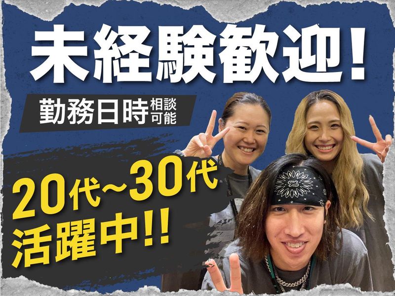 求めている人材 ★未経験者大歓迎★ 特別なスキルや経験は不要。 アパレル・販売デビューも大歓迎! ・主婦(夫)活躍中 ・フリーター活躍中 ・学生活躍中 ・ブランクOK ・もちろん経験者歓迎! \こんな方にピッタリ!/ ◇おしゃれが好き・アパレルに興味がある ◇シフト自由度を重視して働きたい ◇学校や家庭と両立できるバイトがしたい ◇HIPHOP系統のファッションが好き ◇人と話をしたり話を聞くのが好き ◇長期安定して働きたい! <現在働いているスタッフの前職は…> 事務/営業/ホテル/コールセンター/受付/飲食/ホールスタッフ/キッチンスタッフ などさまざま! アパレル以外から飛び込んだ 先輩が多数活躍中です!