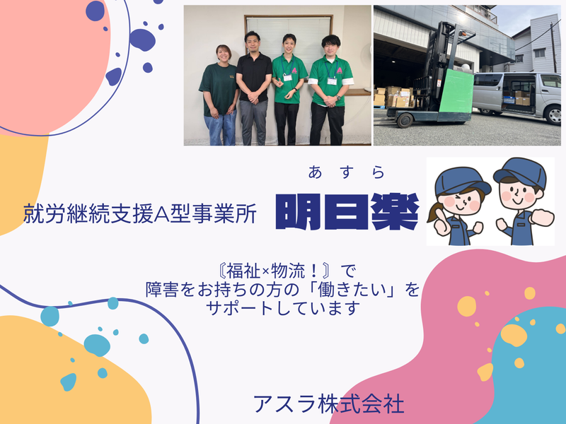 仕事内容 ⭐<笑顔あふれる場♪>共に成長する企業風土で働こう! ⭐<社会貢献度高!>障がいをお持ちの方への就労機会を支援! ⭐<職場>鶴見・綱島駅・日吉駅・新横浜駅からバス (自転車・バイク通勤OK!)「トレッサ横浜」近く♩ 鶴見駅からバス「池の下」下車徒歩3分 新綱島駅からバス「トレッサ横浜前」「明治横浜研究所前」下車徒歩8分 ✅仕事内容 就労継続支援A型事業所での生活支援業務および職業指導業務をお任せします。 障がいや難病をお持ちの方と一緒に、日々の業務(簡単な軽作業)を進めていきながら、 社会の中でステップアップできるようにアドバイスをしたり、悩みに寄り添いながら成長できるようサポートしています✨ <具体的には> ◆障がいをお持ちの方への業務指導(軽作業) 軽作業は「印刷物の封入」や「アニメグッズなどの検品作業」「化粧品のサンプル封入封緘作業」「お菓子の箱組立作業」など色々あります♩ 座ってできる簡単な軽作業がメインです◎ 作業手順や作業のポイント・コツなどを障がいをお持ちの方に指導していただきます。 誰でもできる簡単な軽作業なので、安心してください♩スタッフ一同、楽しく作業しています! 福祉の仕事ではありますが、介護をするわけではありませんので、未資格・未経験の方でも問題ありません♪ 障害者支援が初めてのスタッフも多数います。初めは「障害について」「接し方」など丁寧に教えていきます! ✅働く環境を大切にしています! 当社は就労継続支援A型事業所で、障がいをお持ちの方への就労の機会を提供し、能力向上を目指しています。 スタッフを大切にし、プロフェッショナルとしての成長を全力でサポートします。 ✅会社とともに自分も成長! 地域に根付いて愛されて、設立10年目を迎えることができました。 皆様と一緒に成長し、笑顔が絶えない企業風土を目指しています!