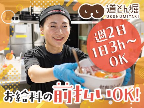 仕事内容 《キッチンスタッフのお仕事》 \未経験者さん大歓迎!/ ほとんどが食材を切る・盛り付けるのみで、 初めてのキッチンお仕事にもオススメ! ・野菜の仕込み ・豚肉やイカ・タコなどを切る ・簡単な盛り付け ・お好み焼き等の調理 ・洗い場での皿洗い など \10代,20代,30代,40代活躍中!!/ 話しやすい仲間ばかりで、 休憩中やお仕事前後に雑談したり... わからない時もしっかりとフォロー! \応募理由は簡単でOK!/ 「働きやすそう」「家から近い」 「稼ぎたいから」などでOK! 自由な雰囲気のお店です。 お気軽に応募してください! 面接では週何日希望や勤務開始希望日など、 カンタンな質問のみなのでご安心を! 《出勤日が楽しくなる?そんな職場です!》 10代,20代,30代,40代活躍中!! 話しやすい仲間ばかりで、 休憩中やお仕事前後に雑談したり... わからない時もしっかりとフォロー! 《嬉しいメリット多数あり!》 *毎日がお給料日!一部前払い制度あり (稼働分/入社2ヵ月以降・労働時間×500円相当) *土日祝は給与UP! *1日4時間以内のスキマ時間勤務OK *年4回新商品試食会あり *家族も友達も使える社割あり *Wワーク・副業OK *正社員登用あり 《道とん堀のご紹介》 HP:https://dohtonbori.com/ お好み焼き、もんじゃ焼き、鉄板焼き、 パンケーキなどのおいしいメニューが人気! ほぼ全てのお客様がセルフでお好み焼きを焼くので 従業員への負担も少ないです◎ 上手く焼けた時はお客様も喜んでいますよ!