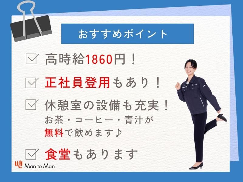 求める人材: 【応募資格】 資格・経験不問!! ーーーーーーーーー ブランクOK!未経験OK! ーーーーーーーーーーーー / 特別な知識やスキルは一切不要☆ \ 【このような方が働いています】 ・とにかく稼ぎたい方 ・異職種から転職された方 ・工場ワークに興味のある方 ・初めて製造のお仕事をされる方 ・男性活躍中の職場で働きたい方 ・20代、30代、40代活躍中の職場で 働きたい方 ・年間休日120日以上の職場で働きたい方 ・寮に住み込みで働きたい方 ・車で通勤されたい方 ・正社員を目指している方 その他にも、Man to Manには、 ハローワークや一般求人誌には 掲載されていないお仕事情報も たくさんありますので、 まずはお気軽にお問合せください。