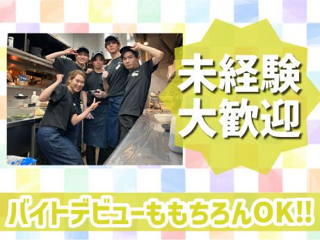 資格 学生・フリーター・主婦(夫)大歓迎! 高校生、社会人、バイトかけもちも大丈夫 ★初バイトやブランクがある方も大歓迎 ★Wワークや扶養範囲内での勤務もOK ★短期希望もご相談下さい! 気に入ったら長期に切り替えもOK♪ 初バイトや飲食バイトが 初めての人も大歓迎!! 最初は先輩がついて 丁寧に教えていきます。 少しずつできることを 増やしていきましょう。 ほとんどのスタッフが 未経験から始めてます! 覚えづらいこと、 やりにくい所も分かっているので しっかりサポートしていきます! 分からないことはドンドン質問してくださいね。 <研修について> 売上好調なのでたっぷり採用中! タイミングが合えば同期がたくさんかも☆ 研修はお店の見学、社員の紹介から。 お店の運営方針などもお伝えします。 その後にホールとキッチンは 分かれて実際の業務研修に。 ご案内の仕方、ドリンクの作り方、 どこに何があるかなど、 一つ一つを丁寧に説明します。 フード業界が初めてだった先輩もたくさん! 今では新人さんをしっかり 教えるくらいに成長しています。