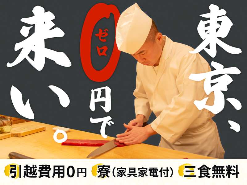 仕事内容 ~未経験から、カウンターで本物を学ぶ~ 『大将による完全マンツーマン指導』 下積みから、すべてに意味がある。 掃除・洗い物から始まり、 やる気と実力に応じて 仕込み、接客、そして握りへ。 一つずつ、確実に任されていきます。 『個人店だからこそ得られる、濃い経験』 仕込みから営業、接客まで。 寿司職人として“独立できる力”を 実践の中で身につけられる環境です。 ┏━━━━━━━━━━━┓ ⧉ 生活面も抜かりなし ⧉ ┗━━━━━━━━━━━┛ ワンルーム寮完備 (駅徒歩10分/落ち着いた住環境) 引っ越し費用・食費の心配は不要。 毎日3食、まかない付き。 地方出身者の方も、 安心して東京で挑戦できます。 ┏━━━━━━━━━━━━━━━┓ ⧉ “一流の現場”を間近で学べる ⧉ ┗━━━━━━━━━━━━━━━┛ 来店されるのは、 常連や経営者層のお客様が中心。 カウンター越しの会話や所作を通して、 自然と接客マナーや 立ち居振る舞いが身につきます。 若いうちから、 本物の空気に触れられる環境です。 ┏━━━━━━━━┓ ⧉ 面接時の特典 ⧉ ┗━━━━━━━━┛ 少しでも興味を持って 面接にお越しいただいた方には、 大将が握る寿司をご馳走します。 味や雰囲気を体感した上で、 じっくり判断してください。 ┏━━━━━━━━━━┓ ⧉ 具体的な業務内容 ⧉ ┗━━━━━━━━━━┛ ◆仕込み作業 ・魚を下ろす ・シャリ作り ・米研ぎ など ◆食材の仕入れ・準備 ◆カウンターのセッティング ◆調理補助・盛り付け ◆接客対応(紹介客中心) ◆店内清掃・洗い物 まずは基本から。 そして確実に、職人の道へ。