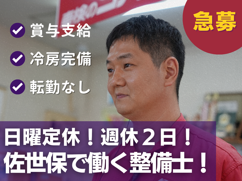 日曜定休★週休2日★冷暖房完備【佐世保で働く整備士】