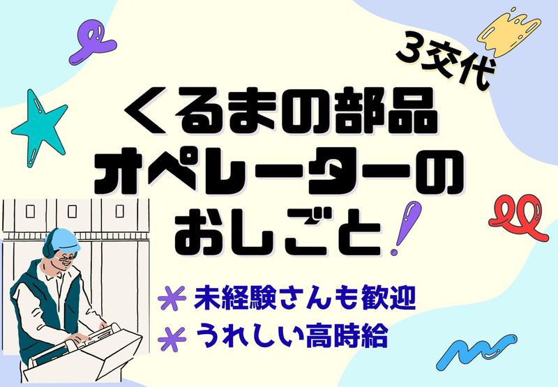 仕事内容 ✨未経験スタートでも時給1300円★ ✨3交代制シフト&深夜手当あり♪ ✨昼食は1食290円の食堂を利用OK◎ ✨20代~40代のスタッフ活躍中! *.゜。:+*.゜。:+*.゜。:+*.゜。:+*.゜。:+ 気になるお仕事の内容は!? *.゜。:+*.゜。:+*.゜。:+*.゜。:+*.゜。:+ =================== 車のプラスチック部品を作るお仕事 =================== ✅プラスチックの材料を機械に投入 ✅機械のボタンを押す ✅出来上がった部品を確認& 部品の入ったかごを回収 作業はこれだけ!とってもシンプル☆ もちろん丁寧な教育があるので 業界未経験の方も安心です♪ サンワアルティス社員一同 貴方のご活躍される姿を楽しみに おまちしております♪ どんなお仕事か気になった方は 質問だけ・登録だけでもOK! お気軽にご相談ください♪ ⭐オンライン面談随時受付中です!! お家にいながら気軽に面談OK♪ *.゜。:+*.゜。:+*.゜。:+*.゜。:+*.゜。:+ このお仕事のおすすめポイント *.゜。:+*.゜。:+*.゜。:+*.゜。:+*.゜。:+ ⏩歩き回って運動にもなる「ものづくり」 ⏩研修制度充実!先輩が丁寧に教えます ⏩社会保険完備&即日加入 ⏩5勤2休でメリハリつけてお仕事 ⏩履歴書不要!リモート面接もOK! ◆=================◆ 最後までお読み頂き、 誠にありがとうございます! 詳しくお仕事について 話を聞いてみたいッという方も大歓迎! これまでのご活躍や お仕事に対するご要望など、 詳しくお伺いさせて頂いた上で ピッタリのお仕事をご紹介したいので、 まずはお気軽にご相談ください♪ 担当より追ってご連絡いたします。