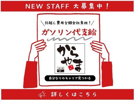仕事内容 こだわり抜いた究極のからあげ店で”店長”募集! いちど食べたらやみつきになる! 厳選素材、漬け込み、丁寧な揚げ、そして秘伝のタレ… 外はカリッと、中はジューシー 「究極のからあげを求めて」たどり着いた逸品をご提供! あなたも一緒に、からやまのファンを増やしていきましょう。 飲食経験を活かす!フォロー体制抜群で店長デビューも安心◎ 【具体的な仕事内容】 ・調理・接客 ・食材発注管理 ・スタッフ教育 ・数値管理など 飲食店での経験を活かして働けます◎ チェーン店の店長は初めて…という方も安心! 店舗運営、近隣店舗との連携など しっかり丁寧にお教えします。 「かつや」を中心にグループで15ブランド、国内外合計で800店舗を展開中! 国内の低価格とんかつチェーンの先駆けとなった、 とんかつ専門店「かつや」をはじめ、 からあげ専門店「からやま」や 「マンゴツリーカフェ」など個性ある飲食店を展開中の当社。 <新店オープンの数だけチャンスが増えます!> 新業態の出店も加速しており、 店舗が増えれば必要なポストも増加中。 意欲と適正に応じて、短期間での昇進も可能です! 店長から社員のトレーナー、マネージャーやSVなど多彩なキャリアステップが実現可能! 店長として経験を積んだのち、 社員トレーナー、マネージャーやSVなど 多彩なキャリアステップを歩むことができる環境です。 他にも、適正と意欲に応じて 商品企画など本社配属の道も目指せます! 昇進基準は明瞭かつ公平に。 頑張った人にスポットライトが当たる評価制度です。 また、当社の評価制度は極めてシンプル。 例えば店長は3ランクに分かれており、 それぞれテストに合格することで、 ランクが上がっていきます。 受験資格も明確に定めており、 「どうすれば昇進できるのか」の道筋がはっきり見えるため、 モチベーション高く仕事に打ち込むことが可能な環境です。 充実の福利厚生は大手ならではの強みです。 ・借上げ社宅制度 ・引越費用会社負担(規定有) ・家賃50%負担 ・賞与年2回 ・食事補助 など 働く上で大切な生活を支える福利厚生も 充実していることも魅力の一つ。 貯蓄や自由に使えるお金も増やすことができる環境です。 嬉しい福利厚生は大手ならではの強み。 ぜひ、当社で公私共に充実した毎日を送ってくださいね。