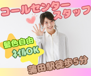 ☆2月入社できる方を募集☆▼日勤×週5勤務×シフト制▼月収22万!JR蒲田駅より徒歩5分!できて数年のきれいなオフィスで働けます☆コールセンターで受注や問い合わせ対応のお仕事!☆服装自由☆髪色自由☆ネイルOK☆