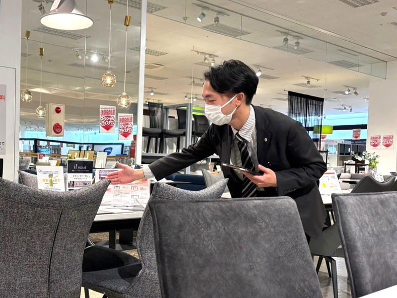 仕事内容 \インテリアや家具の知識はなくても可!/ [研修制度あり!未経験スタートを応援!] <<10~19時*週3日~・1日5h~OK!>> [ リフレッシュ休暇、育休・産休あり ] ワークライフバランスも大事に働ける環境! ------------------- 【仕事内容】 ベッドやソファ等、家具コーナーでの 接客・販売をお願いします。 1)売り場で待機!  ̄ ̄ ̄ ̄ ̄ ̄ ̄ ̄ お客様の動きやお問い合わせに、すぐに 対応できるよう、目配りをお願いします。 気持ちよくお買い物していただけるよう、 「 笑顔で接客 」をお願いしますね。 2)お声がけやご質問に対しての対応!  ̄ ̄ ̄ ̄ ̄ ̄ ̄ ̄ ̄ ̄ ̄ ̄ ̄ ̄ ̄ ̄ お客様のイメージやお部屋のサイズに合わせ 一緒に最適な家具を探してください。 特にノルマなどはございませんので、 お客様目線での対応をお願いいたします。 3)購入商品の運びだしや商品陳列など  ̄ ̄ ̄ ̄ ̄ ̄ ̄ ̄ ̄ ̄ ̄ ̄ ̄ ̄ ̄ ̄ お客様にご購入いただいた商品を レジやお車まで運んでいただきます。 商品ラインナップ変更の際には 商品の入れ替えなどをお願いいたします。 ------------------- \ 嬉しいポイントがたくさんあります / [働きながら知識・スキルUPが可能!] OJT担当者の他、スタッフ全員で教えます! 丁寧な研修で未経験スタートを応援! 職種・業界未経験歓迎!ご安心くださいね! 経験者優遇いたします! [正社員並みの手厚い待遇を用意!] *社保&充実の研修あり・工場見学あり* 費用はすべて「 会社負担 」で行います! [休みもしっかり!充実した休暇制度] 連休可能なリフレッシュ休暇制度(有給)、 育休・産休など、休暇制度もバッチリ! ※リフレッシュ休暇は有給で5連休可能!